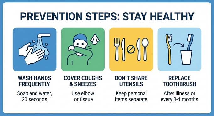 Isolate Utensils: Do not share glasses, forks, or plates. Wash infected dishes in hot, soapy water or a dishwasher.