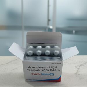 Synthofenac-PG Tablet is a sustained-release oral formulation designed for the management of chronic pain conditions involving both inflammatory and neuropathic components, providing prolonged and consistent pain control.Composition: