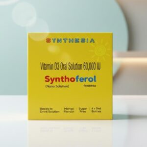 Synthoferol-Nano Sol is an oral Vitamin D3 formulation designed to correct and prevent Vitamin D deficiency, using a nano-based solution to enhance absorption and bioavailability.